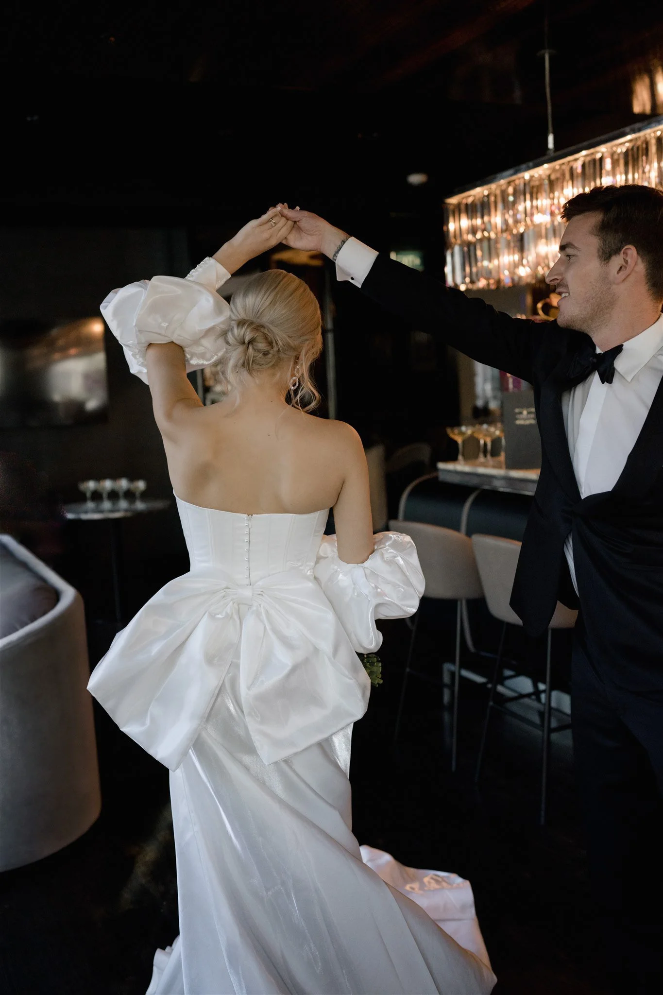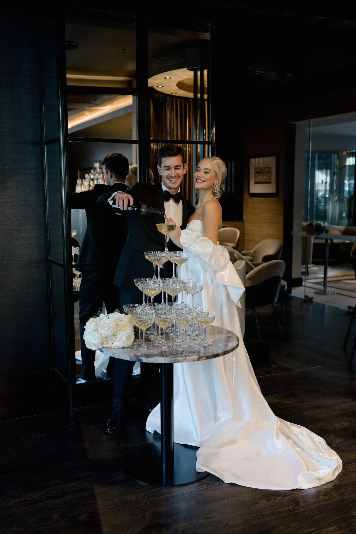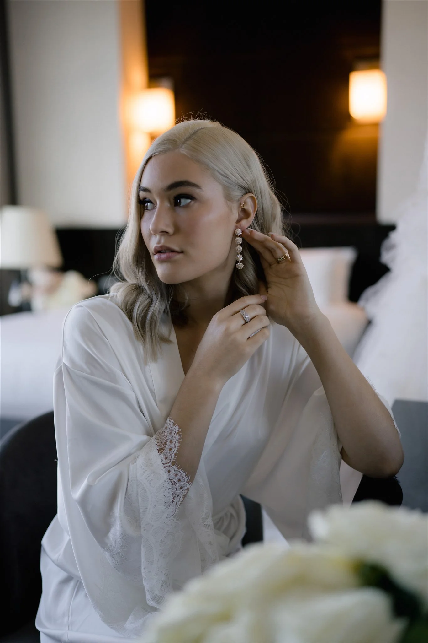 Location – Sofitel / Concept and Photography – Haute Weddings / Florals and Styling – Liberty Event Styling / Stationery – Inker Tinker / Dress – Hera Couture / Suit – Crane Brothers / Morning Robe – The Sleepover / Jewellery – Amelie George / Sunglasses – Ella Jane / Hair and Makeup – Josie Wignall / Cake – Noughts & Crosses / Models – Red 11 Management